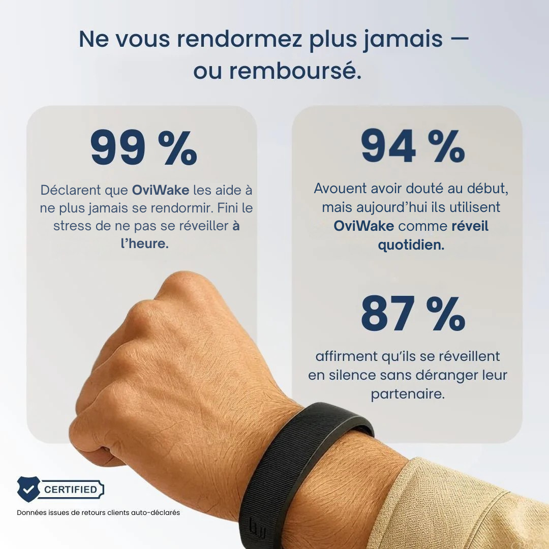 Déclarent que OviWake les aide à ne plus jamais se rendormir. Fini le stress de ne pas se réveiller à l'heure.